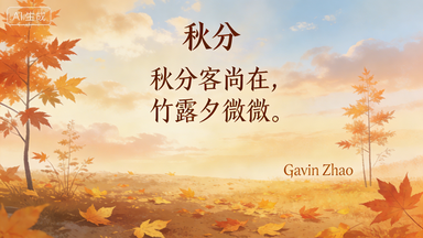 释义:火红的太阳高悬天空,暑气蒸腾浮动;蝉鸣聒噪,不知何时才能停歇。忽然一阵雨打芭蕉,带来片刻清凉,让人感觉仿佛人间也有了秋天的爽利。