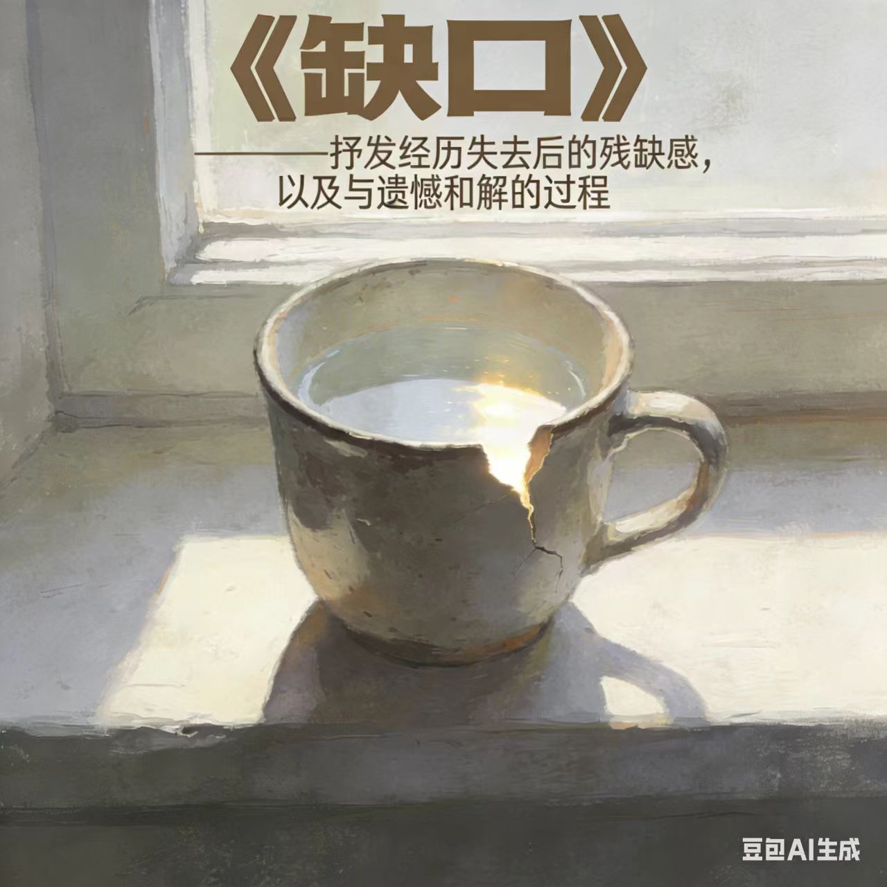 诗歌以杯子的“缺口”喻指心上的伤痕,用“磨得光滑”“不再漏水”的变化,写出与遗憾和解的过程。结尾将缺口比作“徽章”,把被动的承受转化为主动的接纳,立意从伤感转向释然,赋予残缺别样的意义。