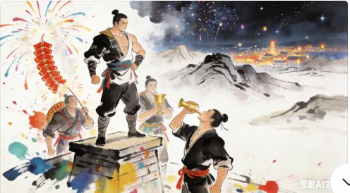 题记 残年将尽,爆竹声喧。一樽倾北斗,万象入新年。何须叹客路风霜,且共此人间灯火,待明朝策马扬鞭。