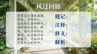注释 • 风的方向:象征着外部环境的影响与命运的不确定性。 • 泥土的怀抱:象征着生命的归宿与自然的轮回。 释义一片叶子从树上飘落,它无法选择是随风飞舞,还是直接落入泥土的怀抱。它只是刚好在这个秋天,完成了一次对树的温柔告别,也完成了自己生命的一次轮回。解析这首诗以 “落叶” 为意象,探讨了生命中的偶然与必然。“没有选择” 的描写,暗示了个体在自然规律面前的渺小。“温柔的告别” 则赋予落叶以情感,表达了对生命逝去的坦然与对自然轮回的深刻理解。