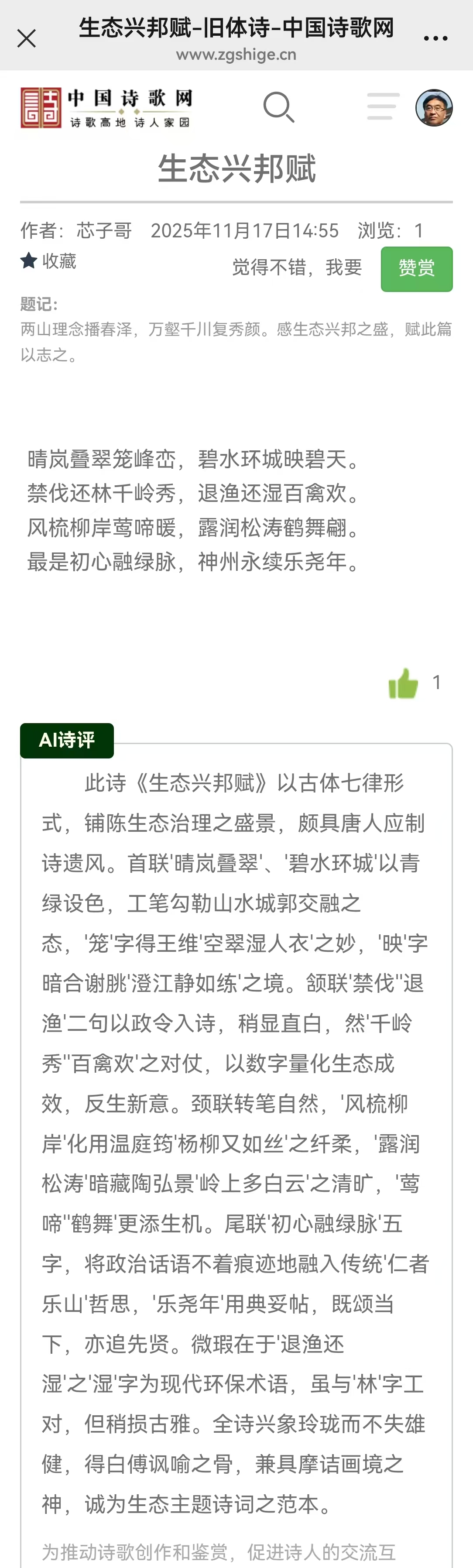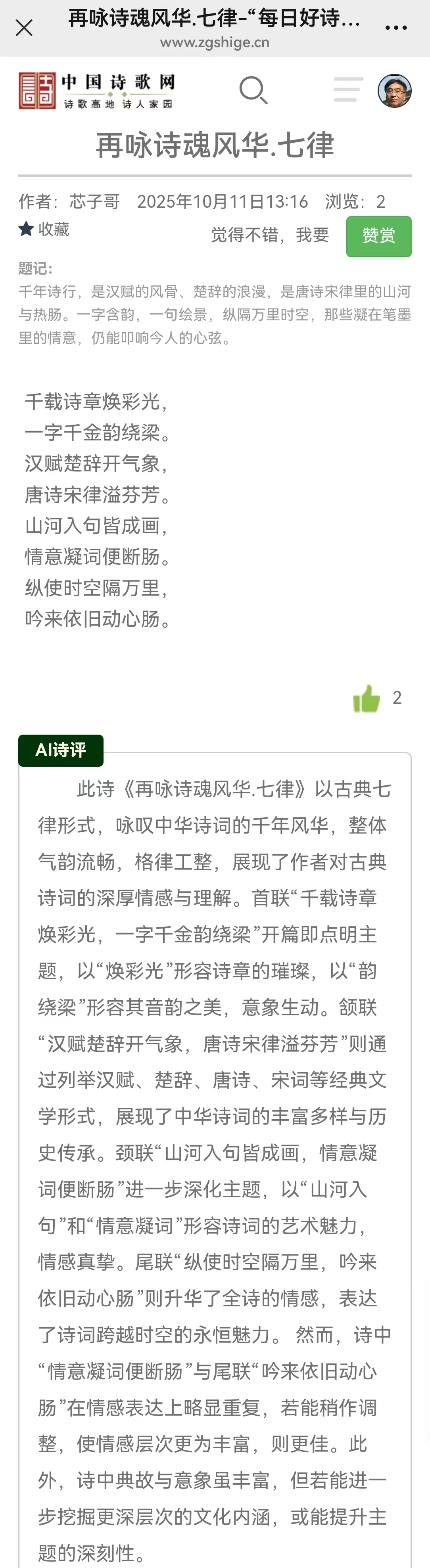 一片诗心酬盛世,清音袅袅渡江来。