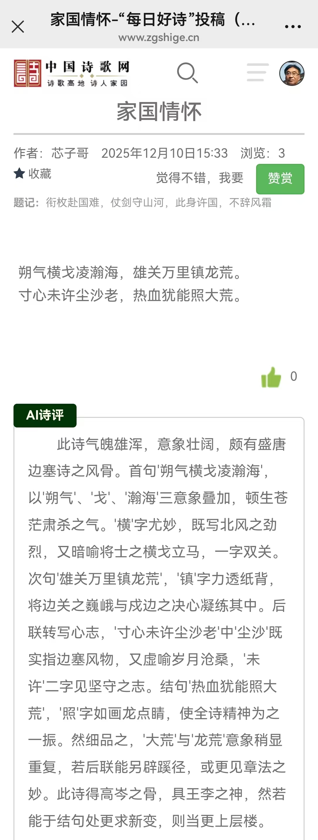 自入驻以来,吾将心血之作一一奉上,冀与全国诗友切磋砥砺,共探诗艺。
